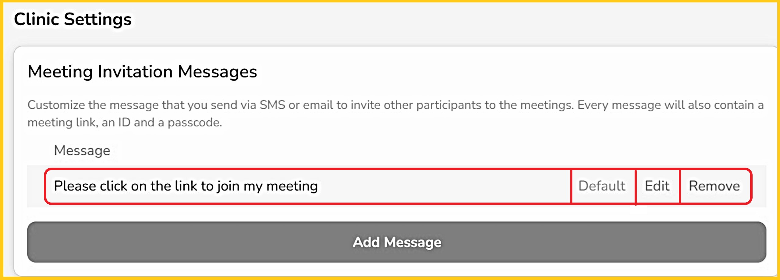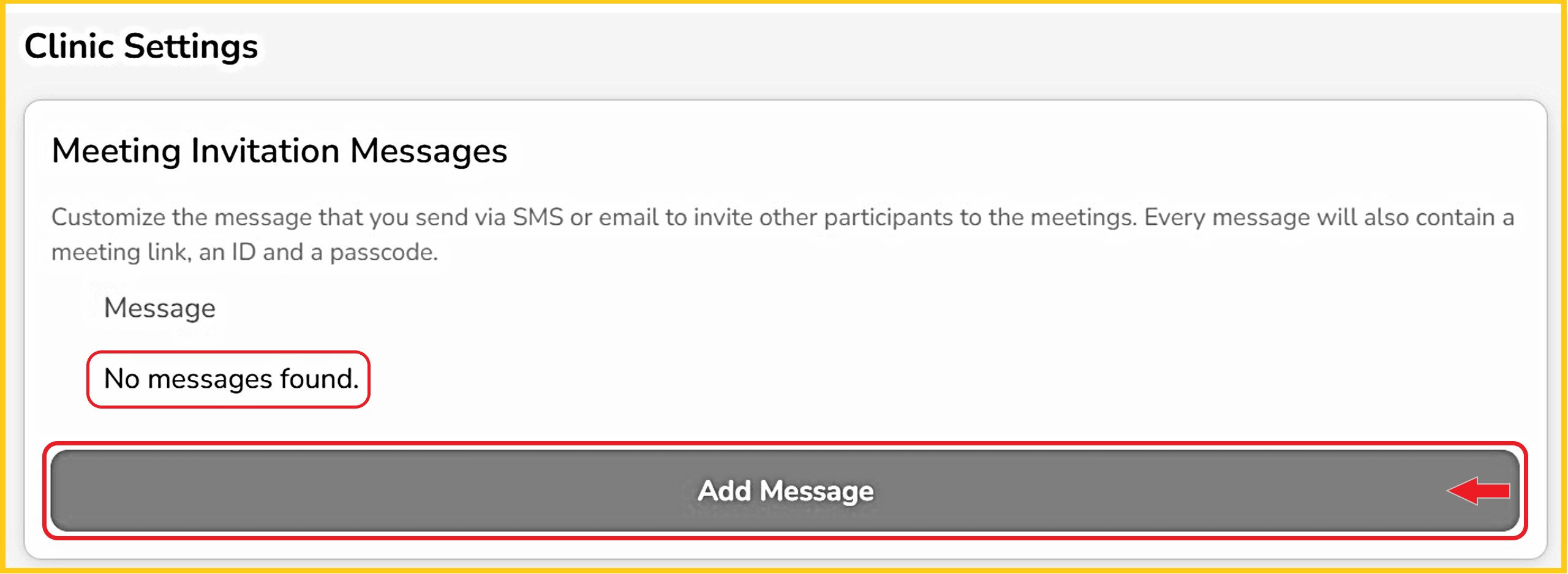 Step 1 - Until one is created, there will be no customized message. Click 'Add Message'.