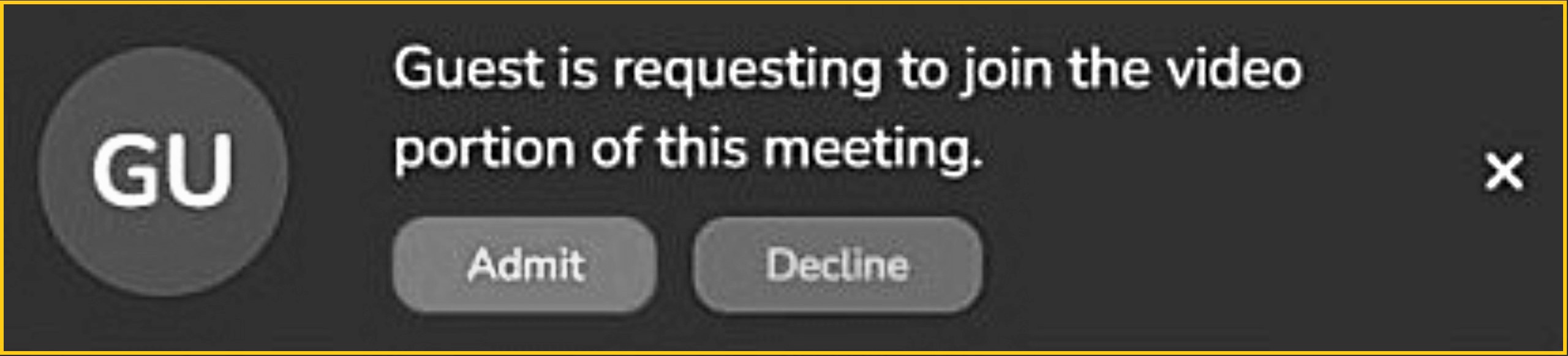Step 6 - Once the invitation has been sent to participant(s), wait for them to arrive. As they do, either 'Admit' or 'Decline' them.