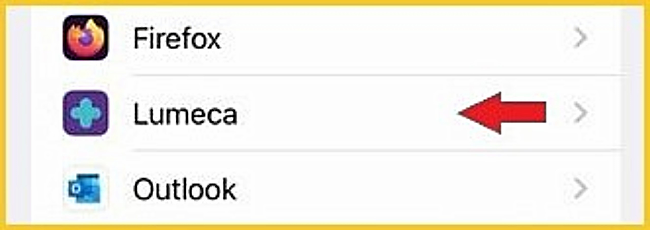 - Open 'Settings', scroll down, open 'Apps', then find & select 'Lumeca'.