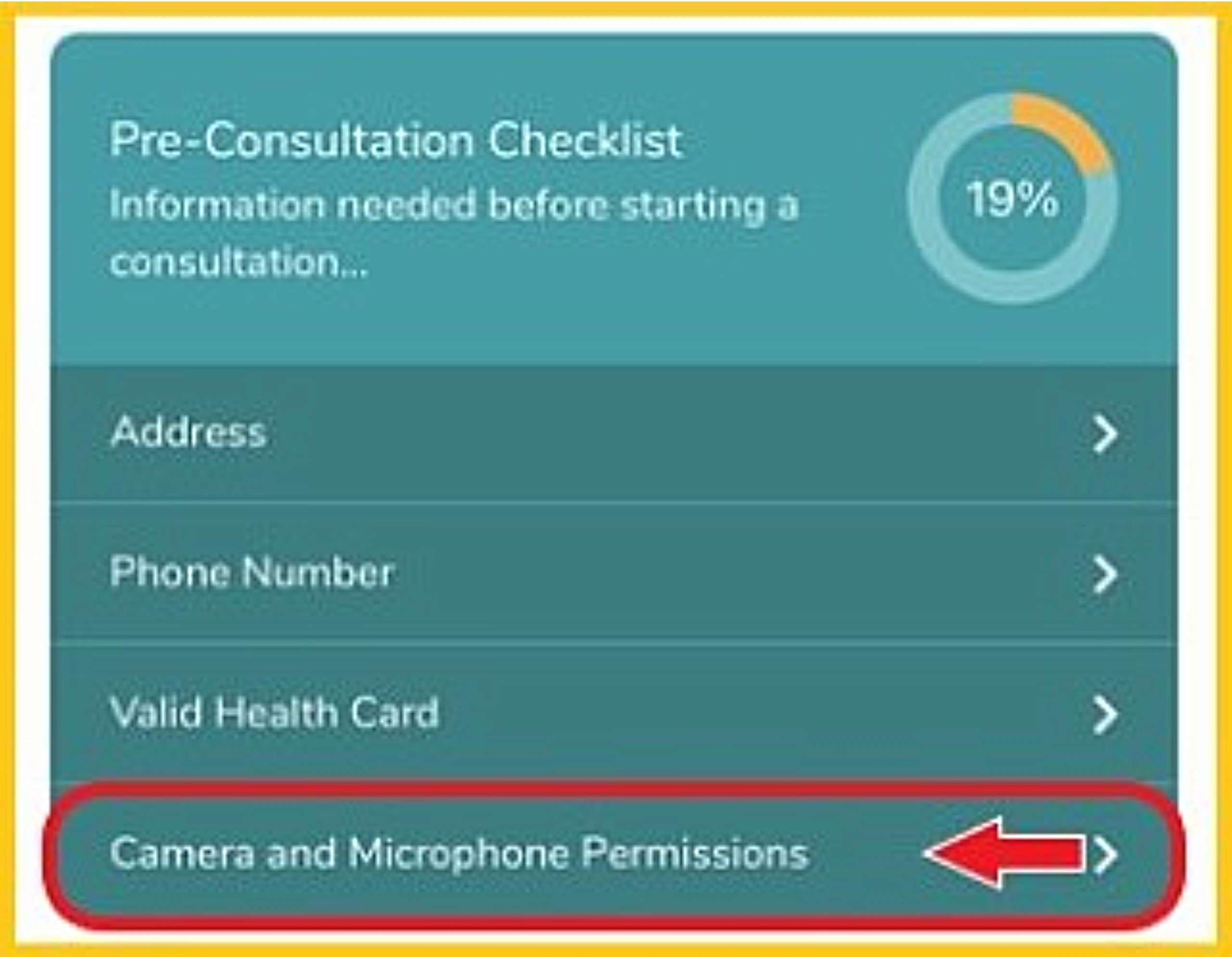 After Creating an Account - Complete the Pre-Consultation Checklist (Patient Feature Only):