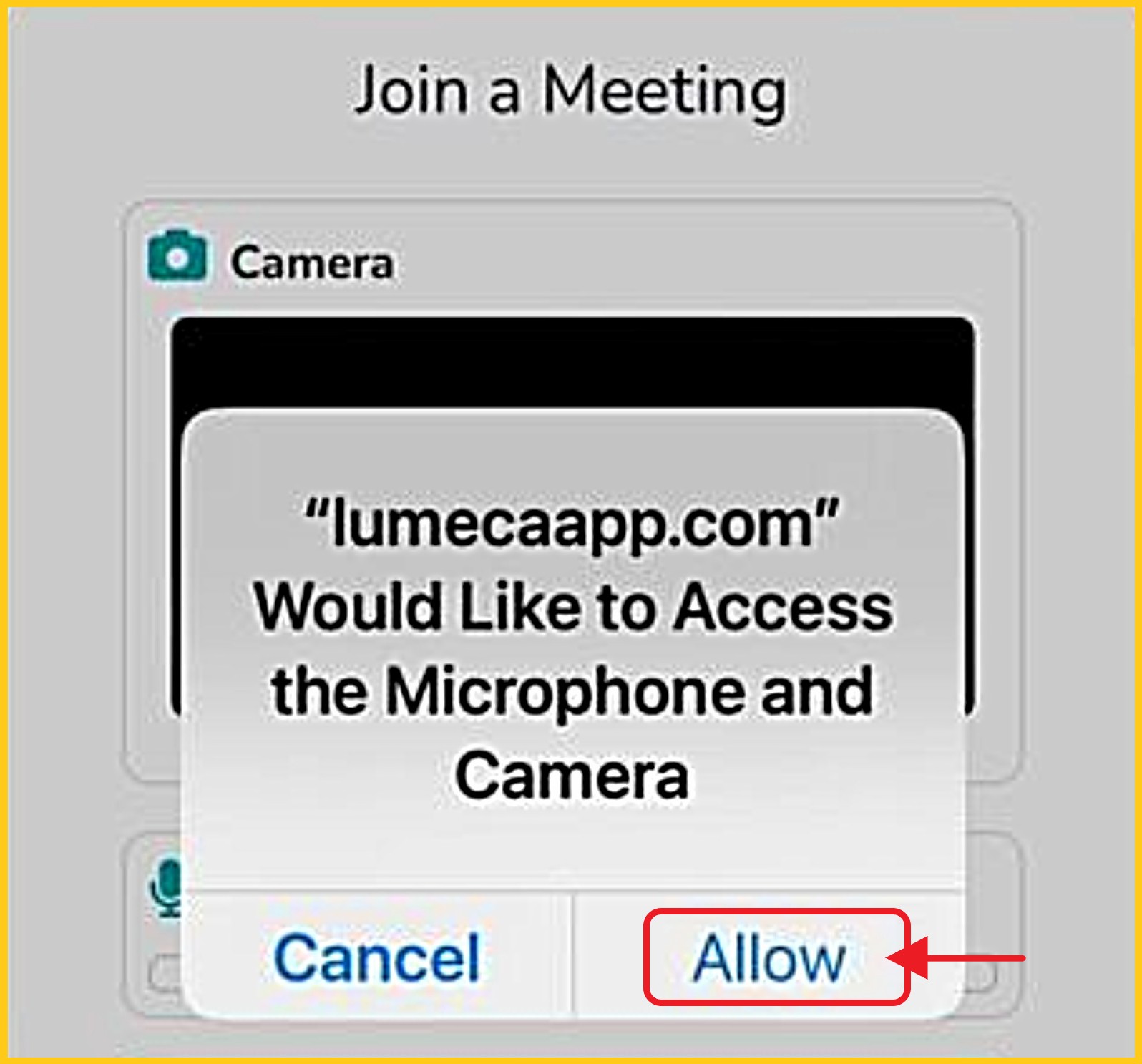 - Always choose 'Allow' for both the Camera and Microphone.