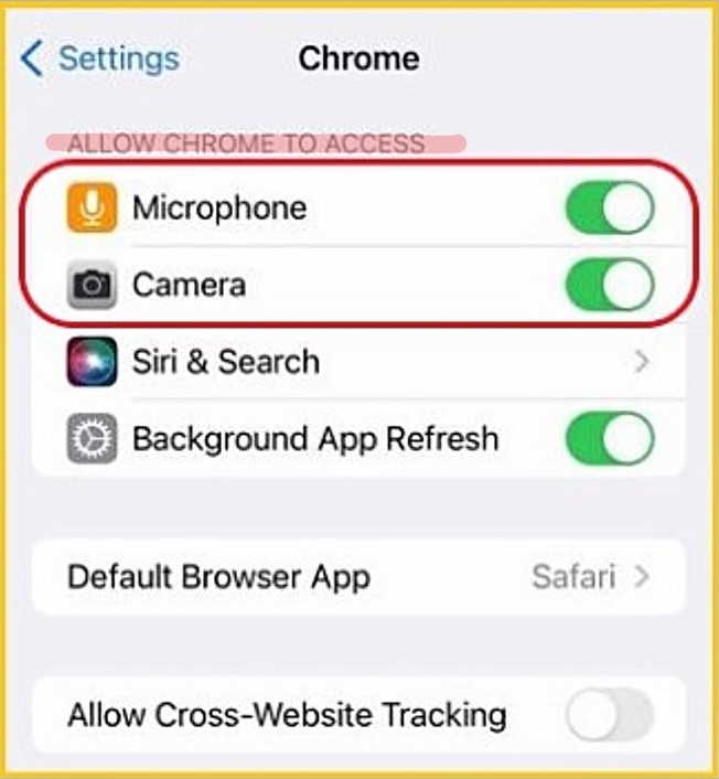 CHROME - under 'ALLOW CHROME TO ACCESS' Turn 'ON' for both. |