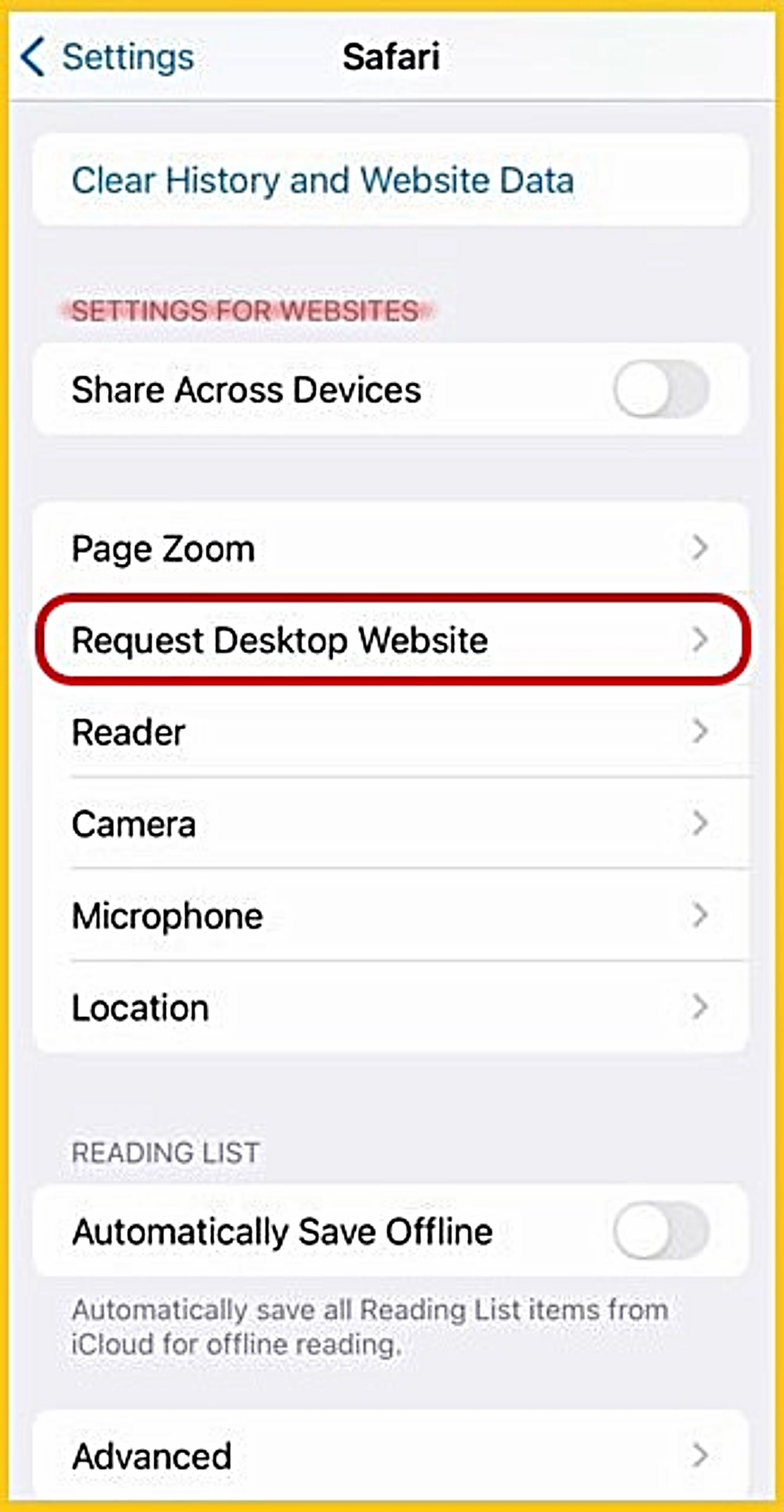 Tap 'Request Desktop Website':