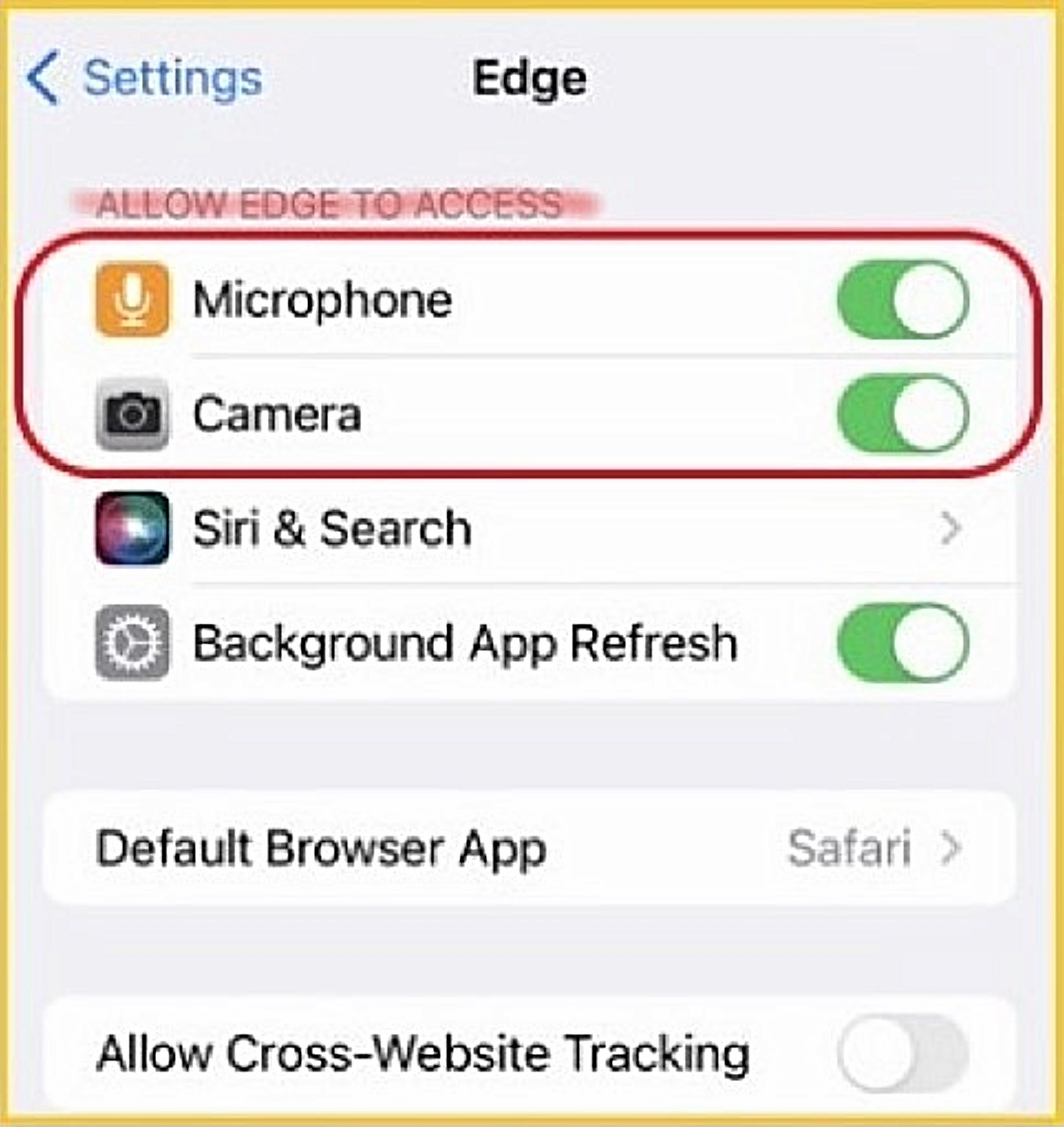 EDGE - under 'ALLOW EDGE TO ACCESS'