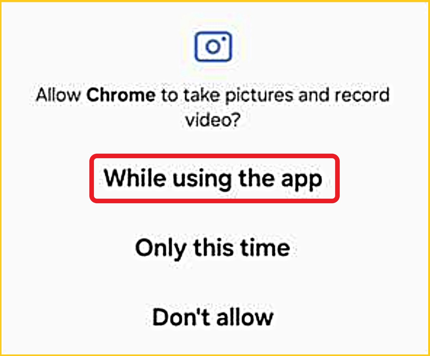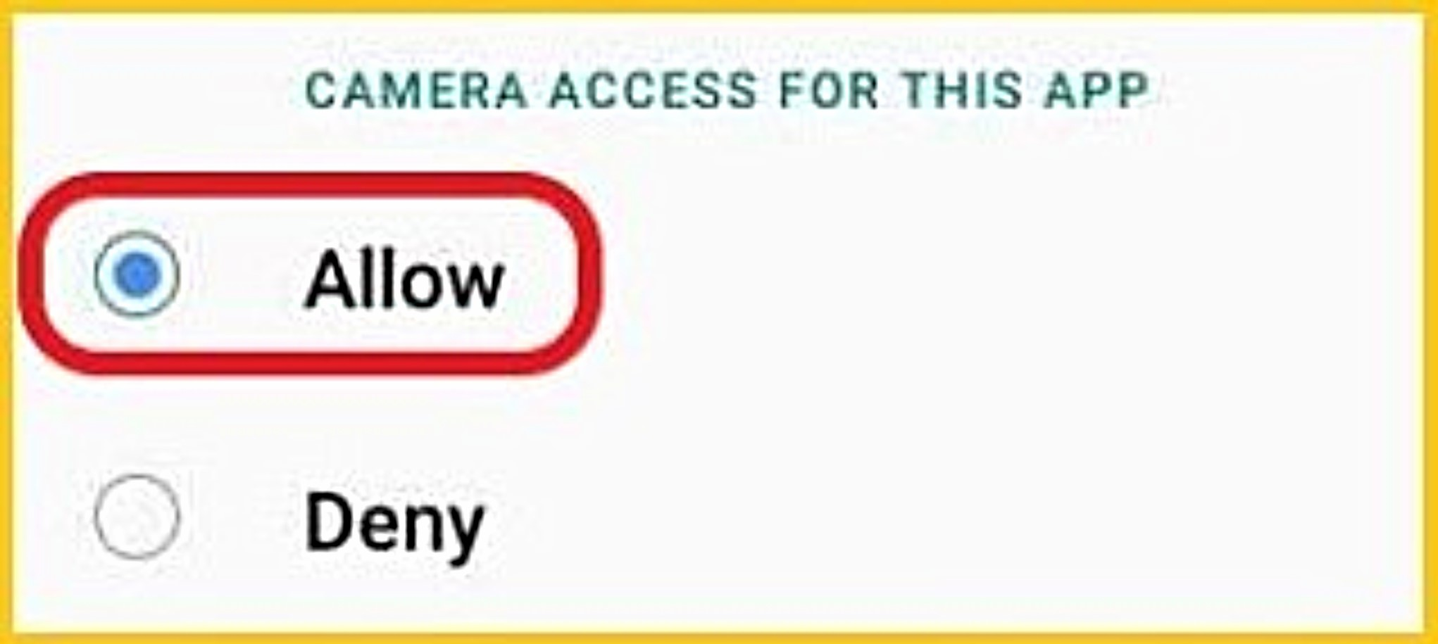 - 'Camera' then 'Allow'