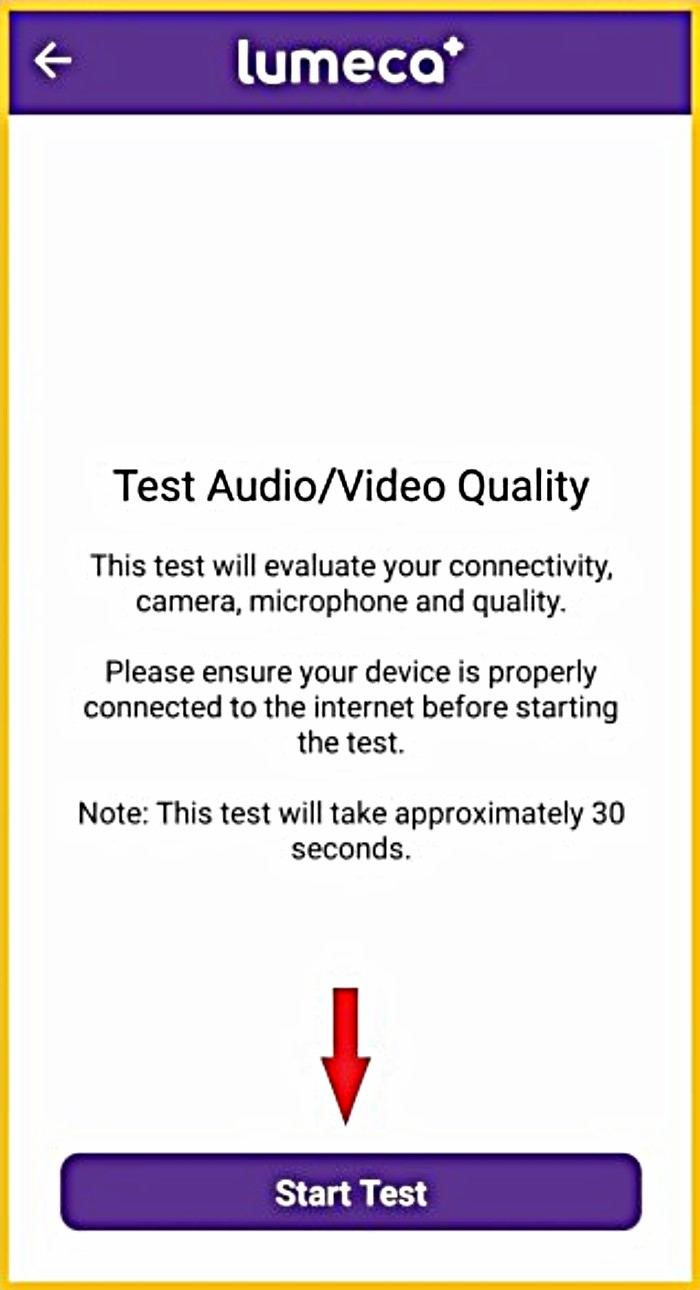 - Ensure your device is on a stable surface and speak, to ensure your camera and microphone are tested properly. The test takes approximately 30 seconds and will let you know the quality of your audio and video and if there are issues.