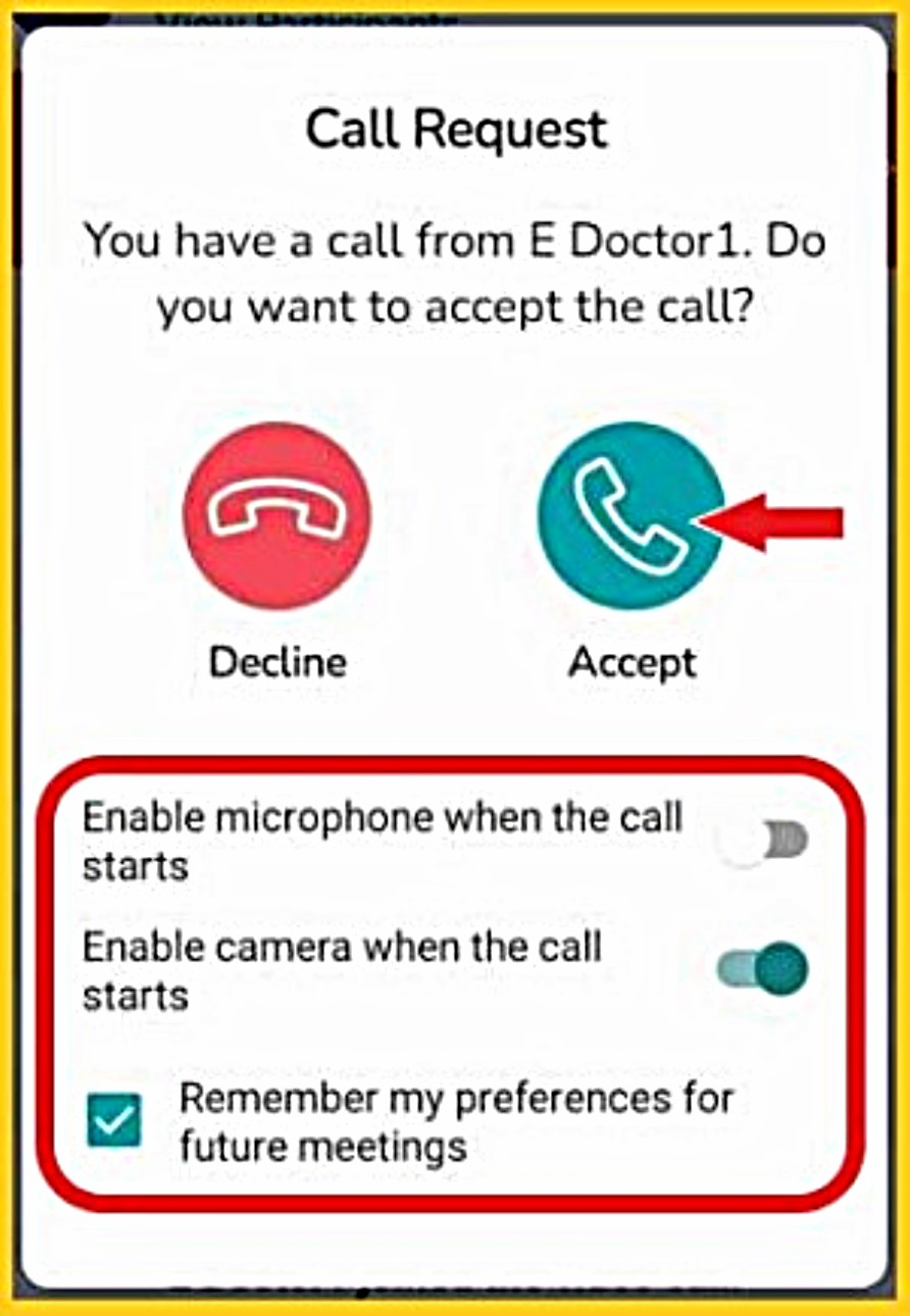 During your patient consultation, your healthcare provider will start a video call and you will see the following screen.