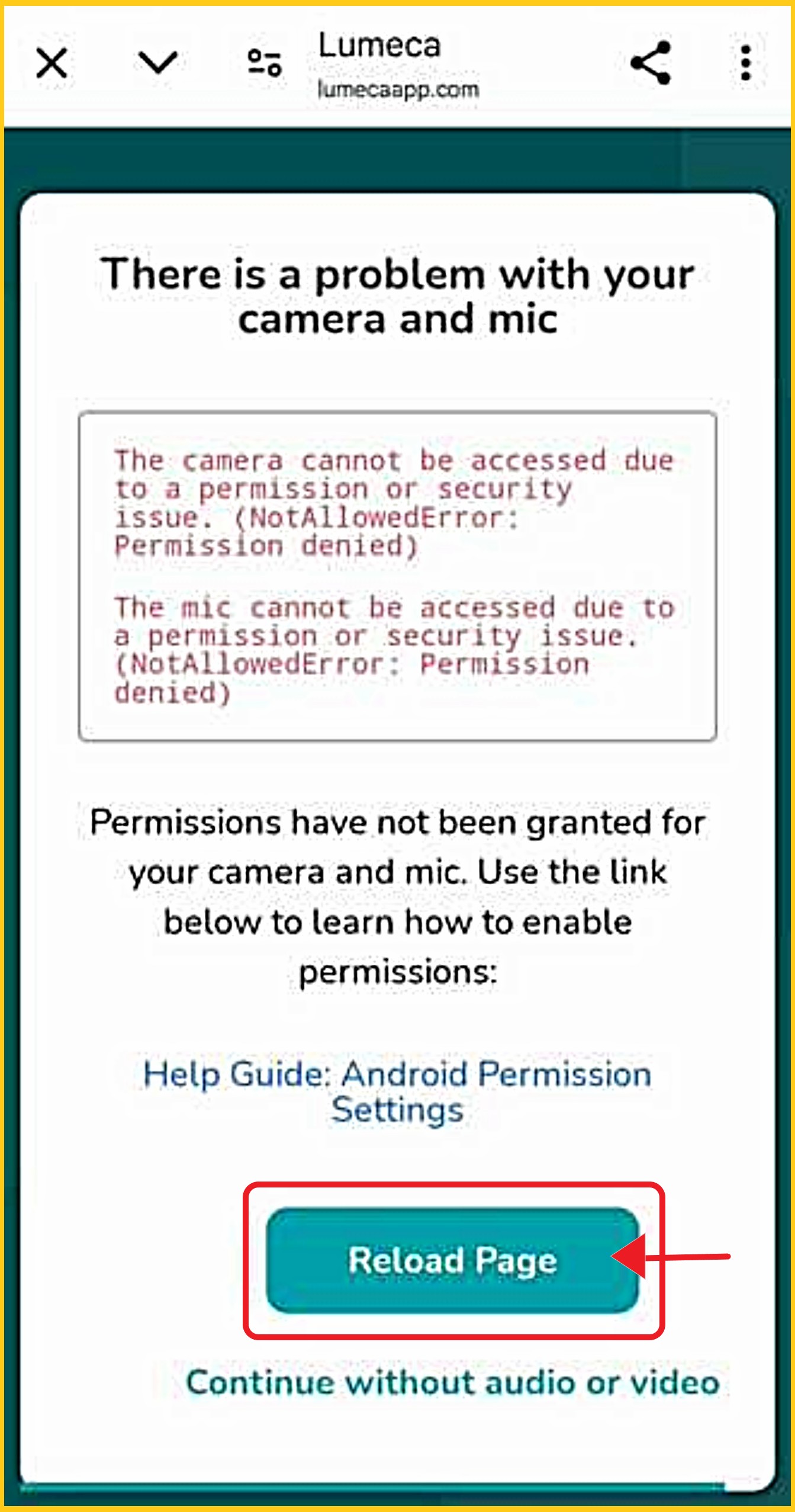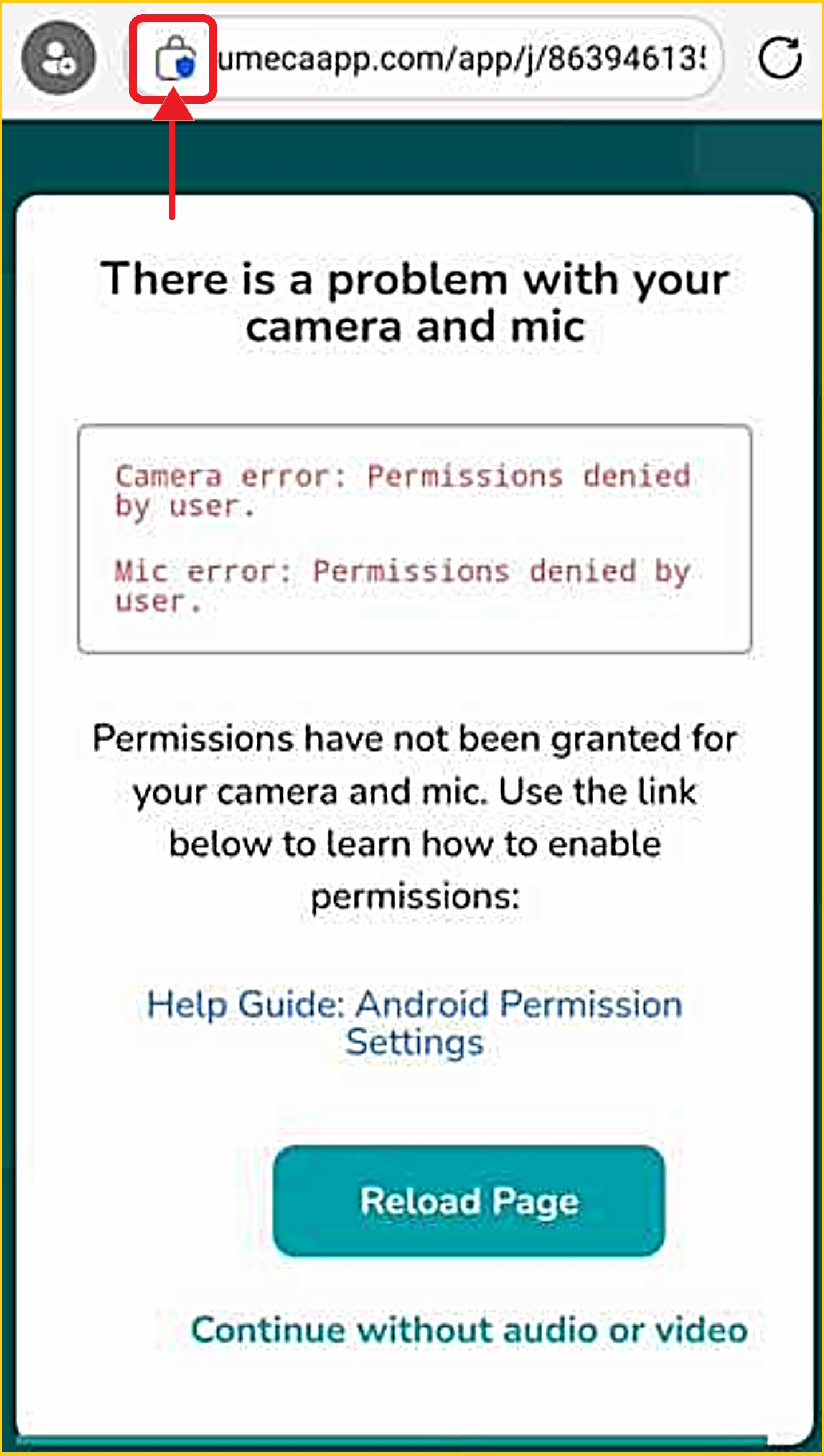 If you blocked or denied your camera/microphone when joining a video meeting on the WEB, you will receive this error screen.