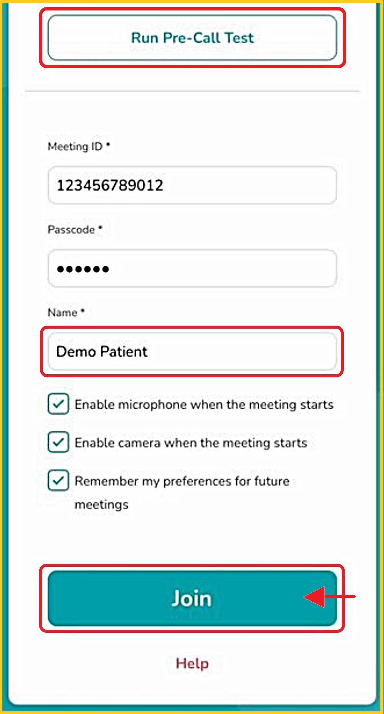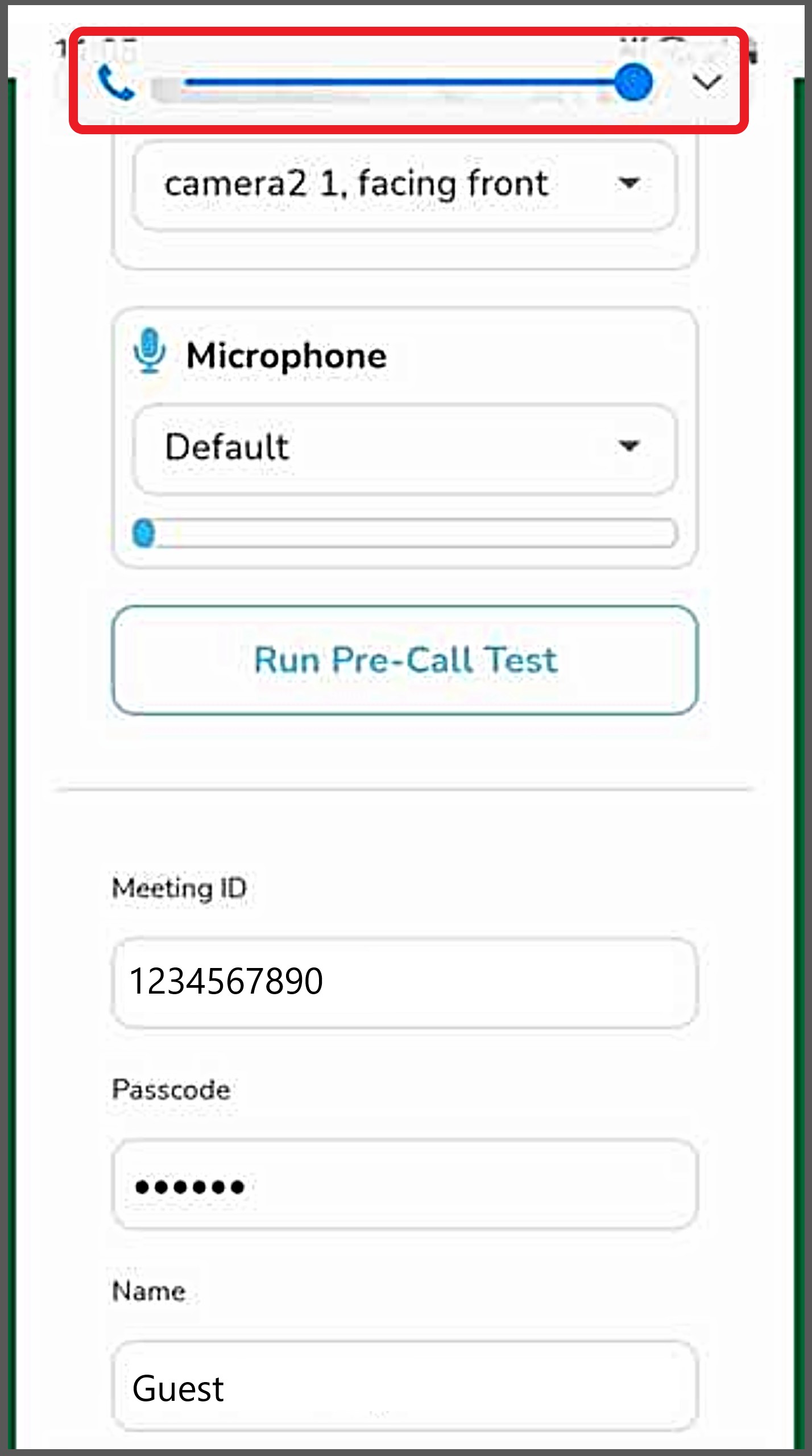 - You may 'Run Pre-call Test' (optional).