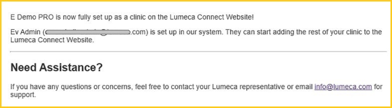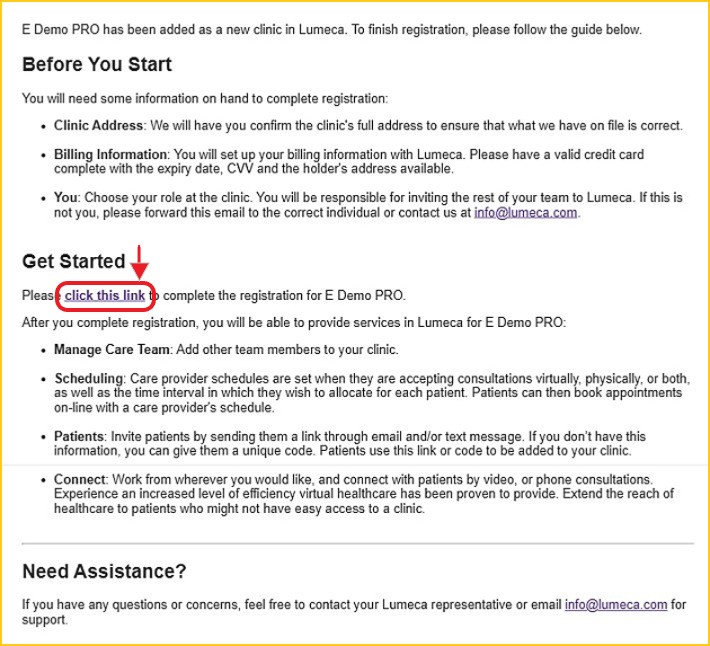 Your Lumeca Health virtual clinic has been set up and requires registration.