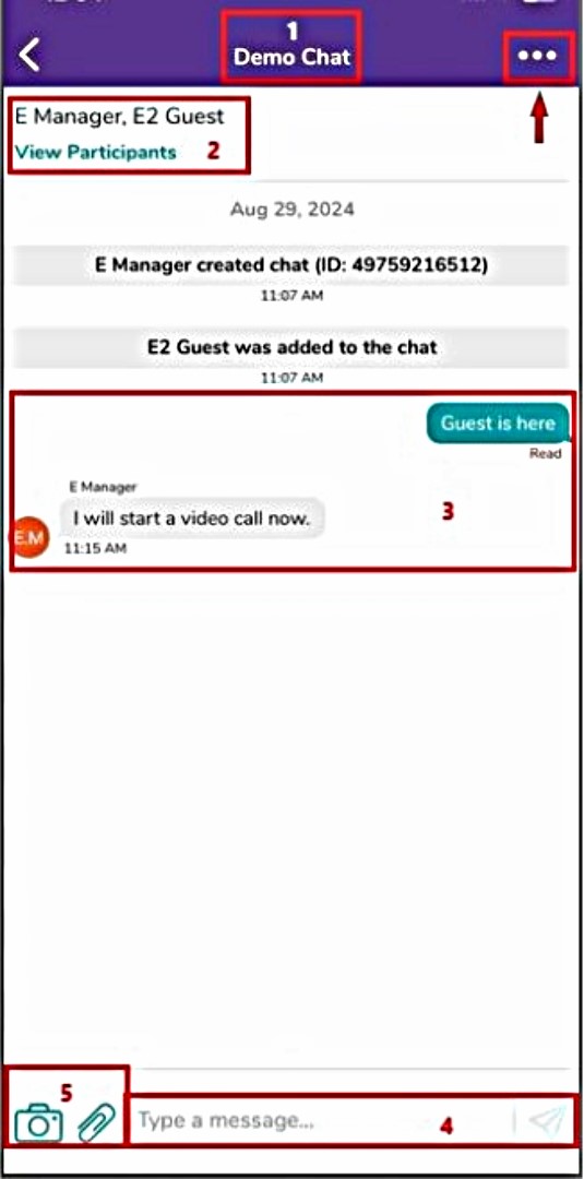 - '3 dots > View Text Chat' - open the message chat and continue to type chat messages and/or upload files