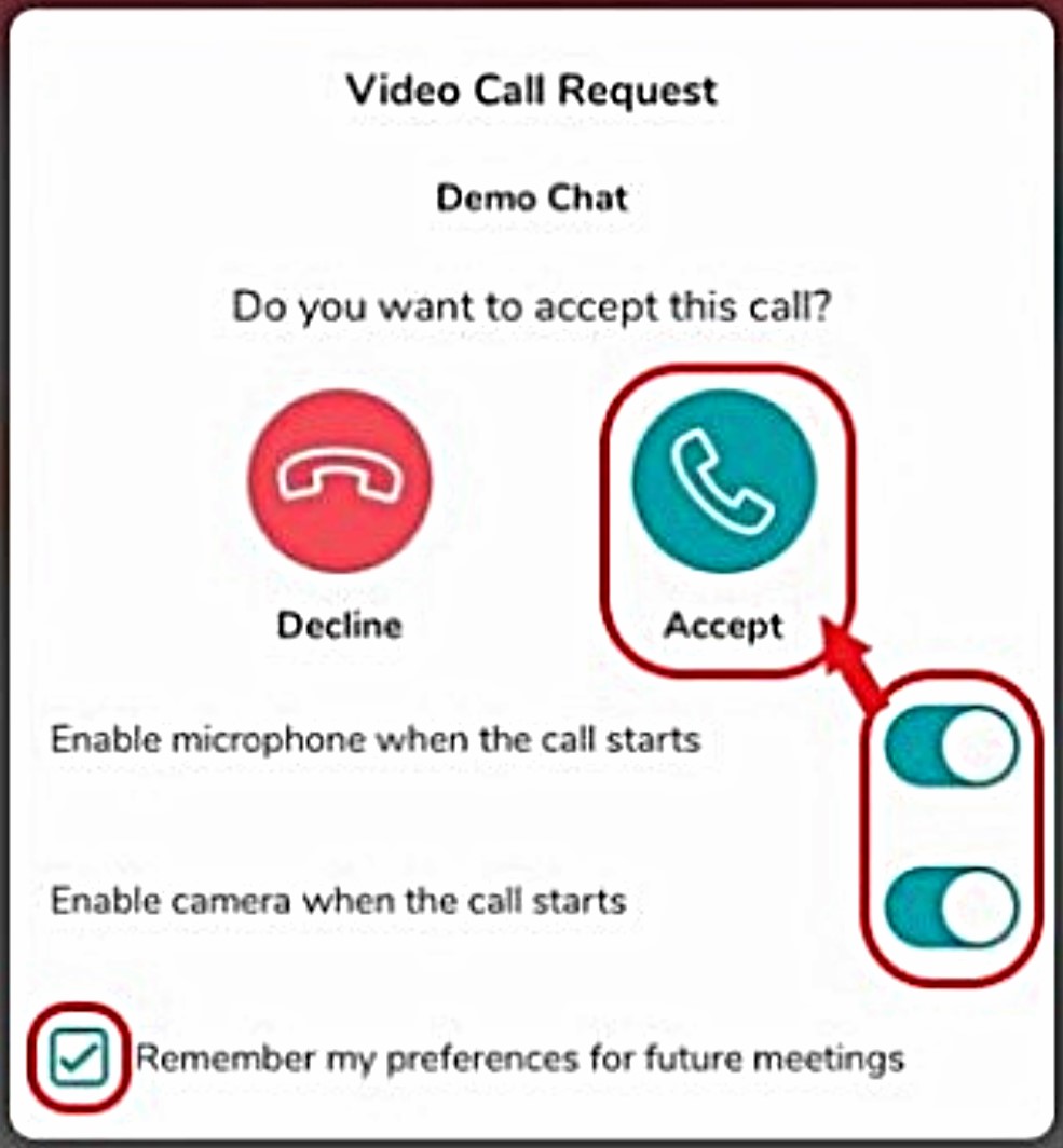 Step 3 - Click 'Start Video Call' or 'Accept'.