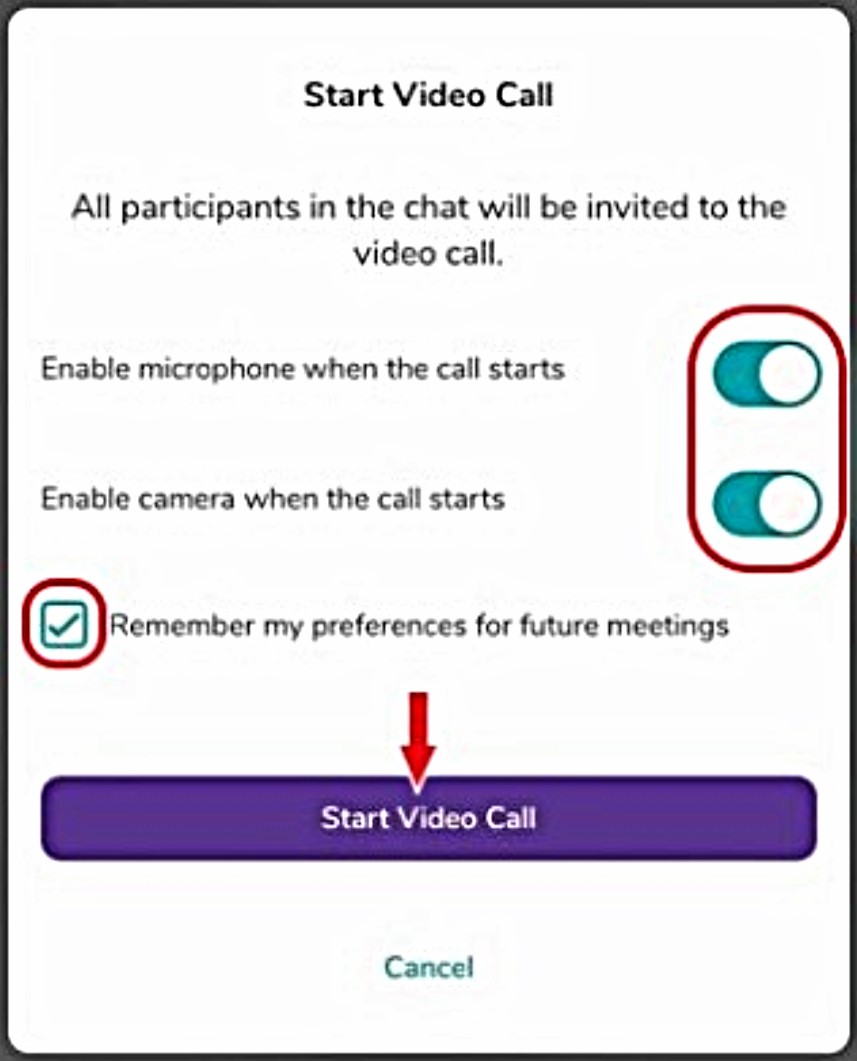 - '3 dots > Start a Video Call' - start a video call