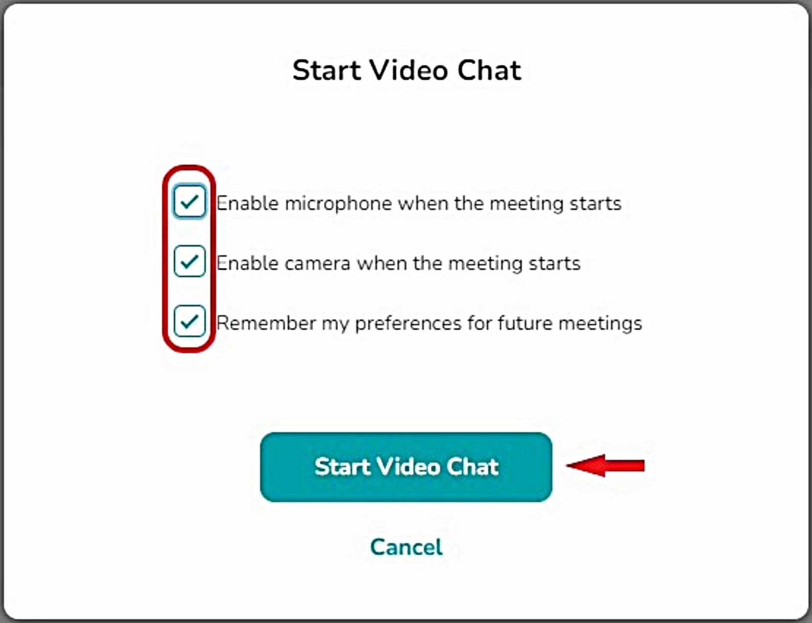 Step 2 - Enable your microphone and camera and check 'Remember my preferences for future meetings'.