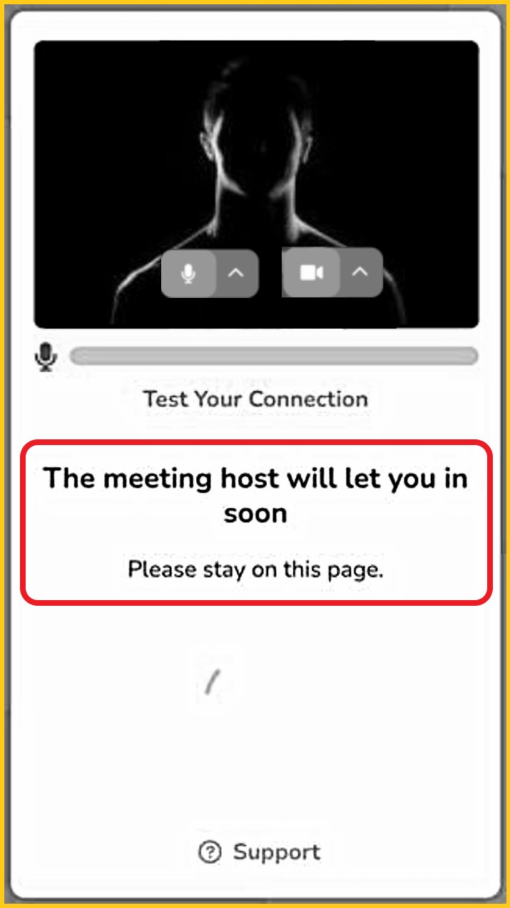 Step 7 - You will be prompted to stay on this page. This is similar to a doctor’s 'waiting room', only it’s virtual. When ready, the host will allow you in and you will be taken into the video meeting.