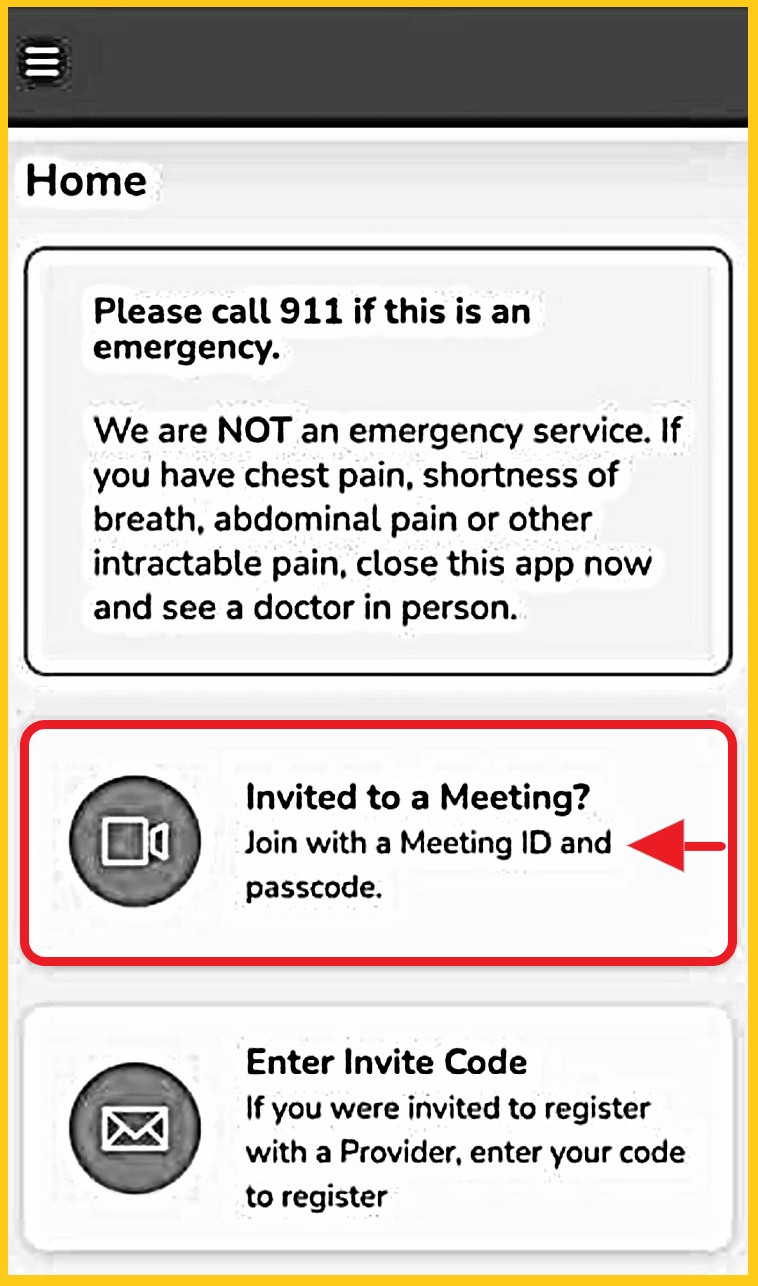 Step 3 - On the 'Home' screen, click 'Join Video Meeting/Invited to a Meeting?'