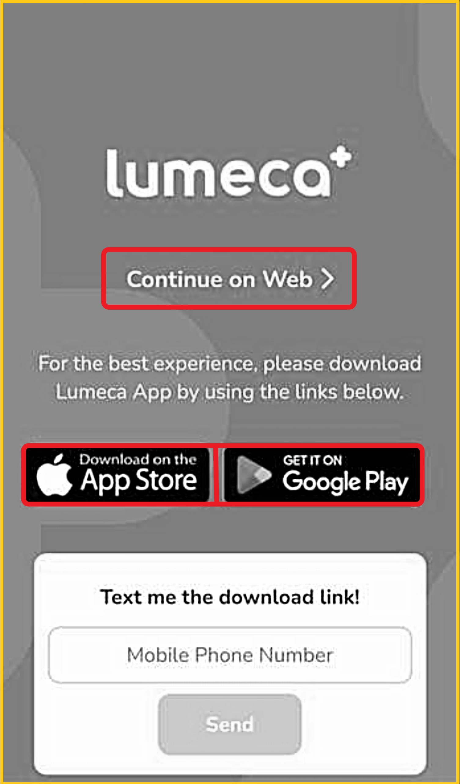 | Or, open your internet browser and go to https://lumecaapp.com/app/?screen=login |