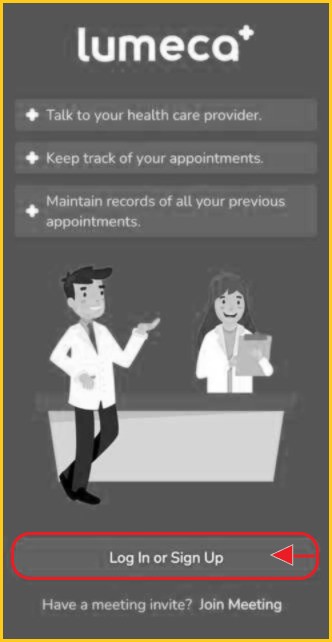 Step 2 - If you have downloaded the 'Lumeca Health' APP, the first time you access it, you may see this screen. Click the 'Log In or Sign Up' button.