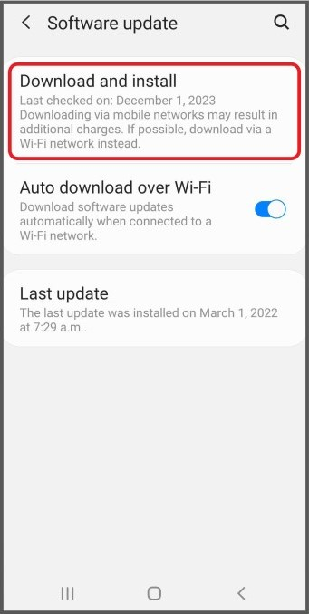You will see either 'Your software is up to date' or a prompt to 'Download and install' the latest version. If required, tap 'Download and install'.
