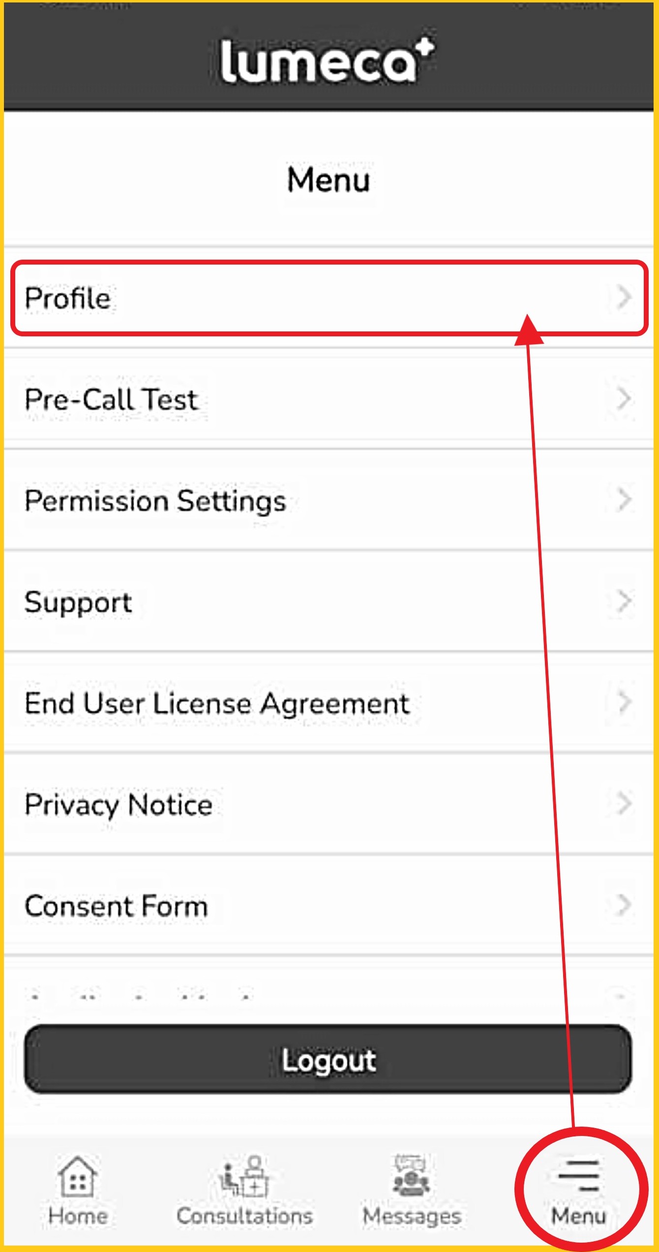 On the APP Tap ‘Menu’ on the bottom navigation bar, then select 'Profile. |