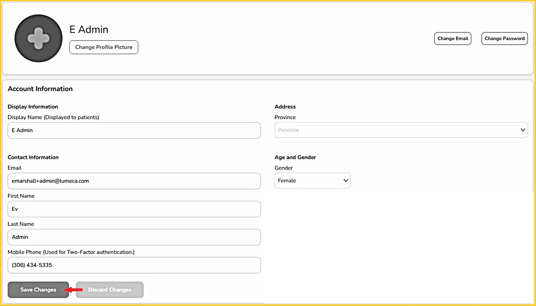 Change Email: If changed, the new email address is to be used to log into your account.