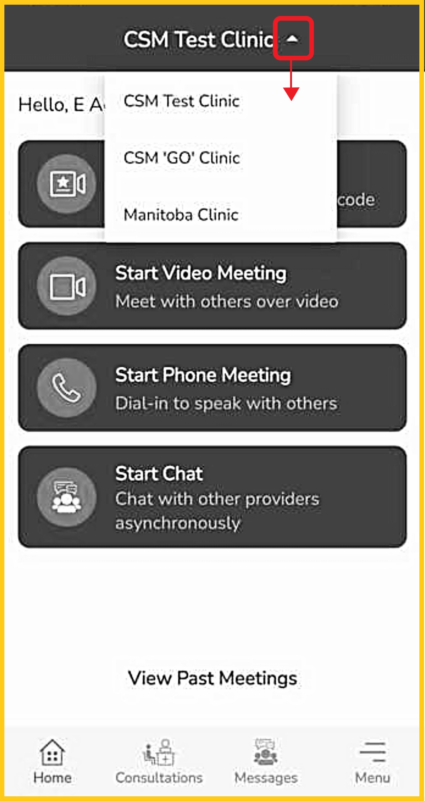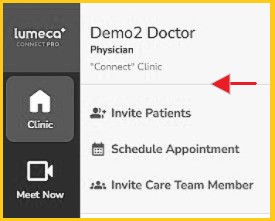 At the top of your screen, tap the drop-down arrow beside the clinic name that is appearing. Select the clinic you are currently working in. |