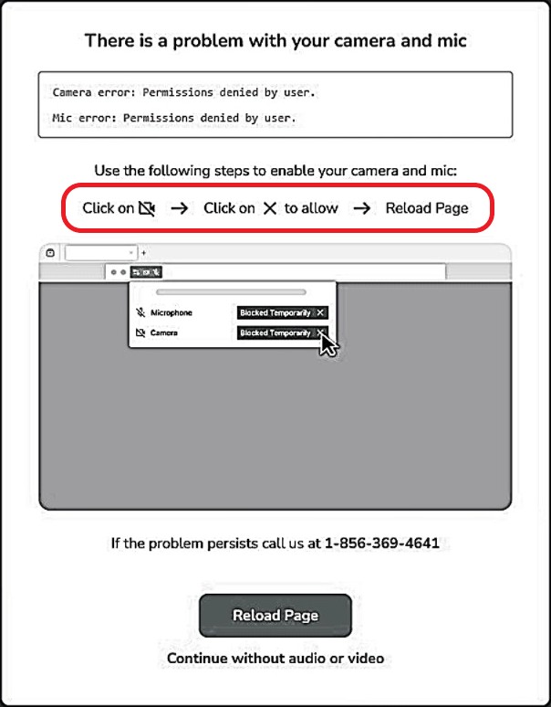 If you have blocked or denied your camera/microphone when joining a video meeting on the WEB, you will receive this error screen: