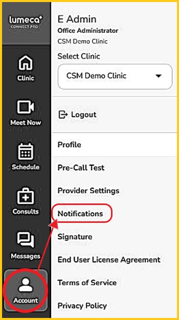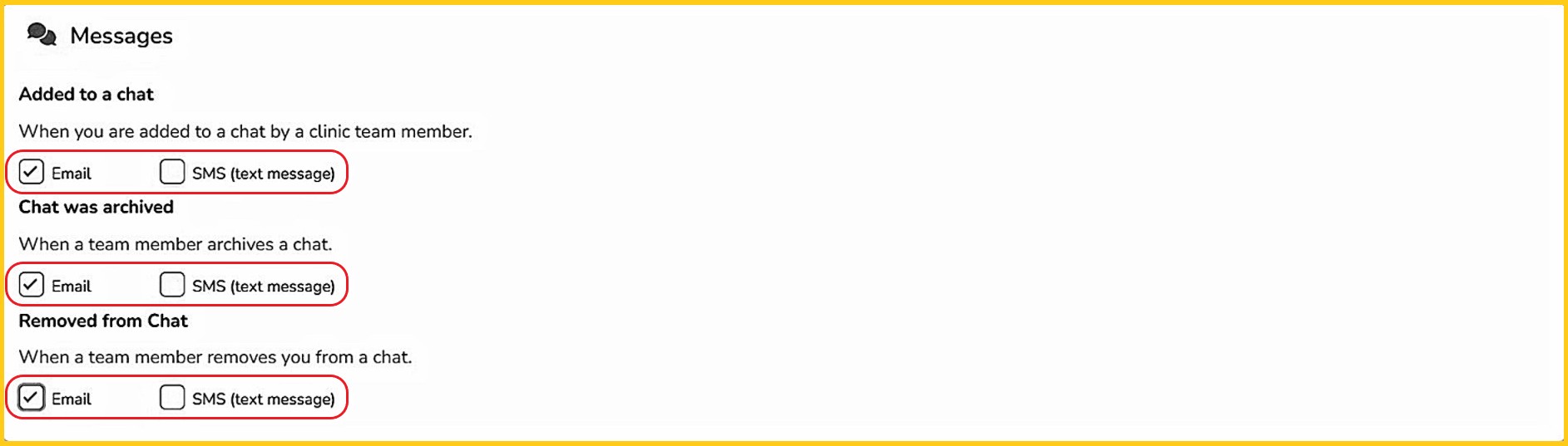 - Note: for new clinic user accounts, a pop-up will appear when first logging in, reminding the user to set all of their 'Messages' notifications.