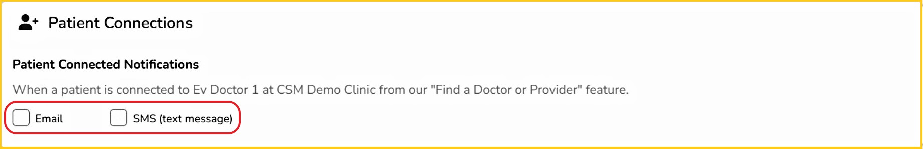 If the 'Find a Doctor or Provider' feature is enabled for your virtual clinic, you will see the 'Patient Connections' section.