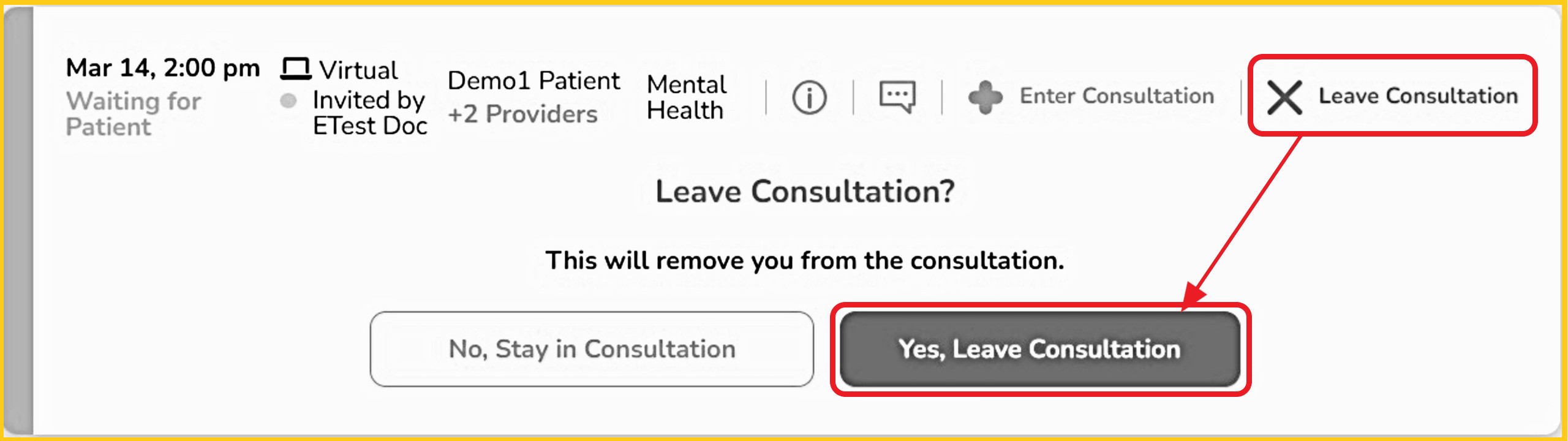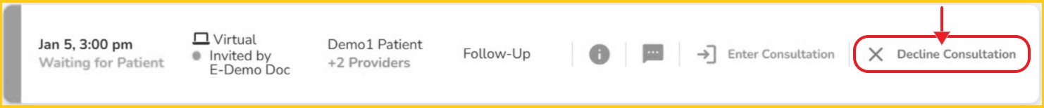 Step 2 - Click the red 'X' or 'X Decline Consultation'.