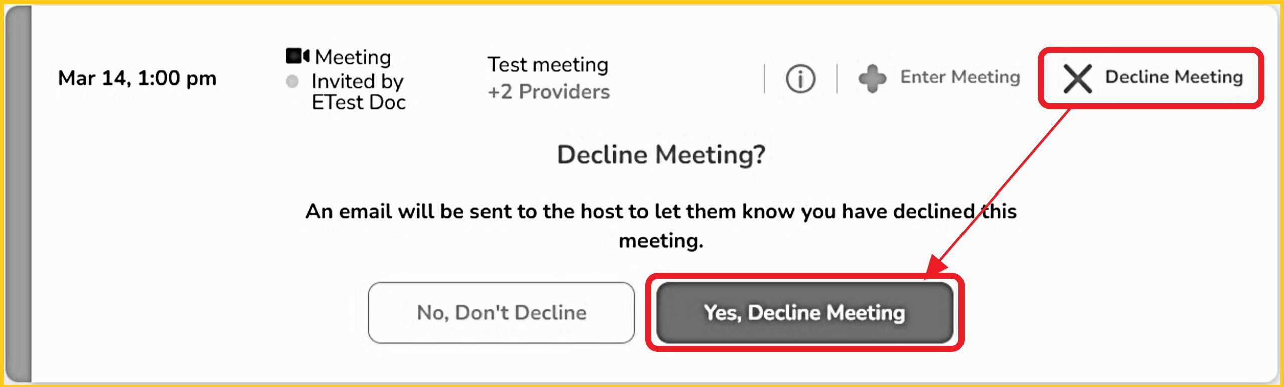 A banner will confirm that the invitation is declined.