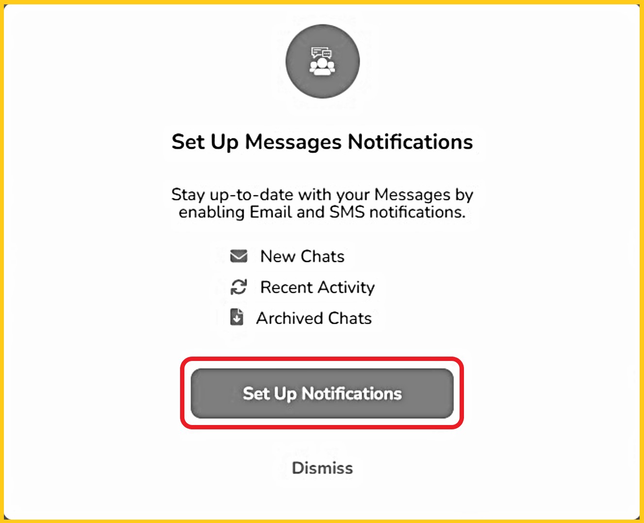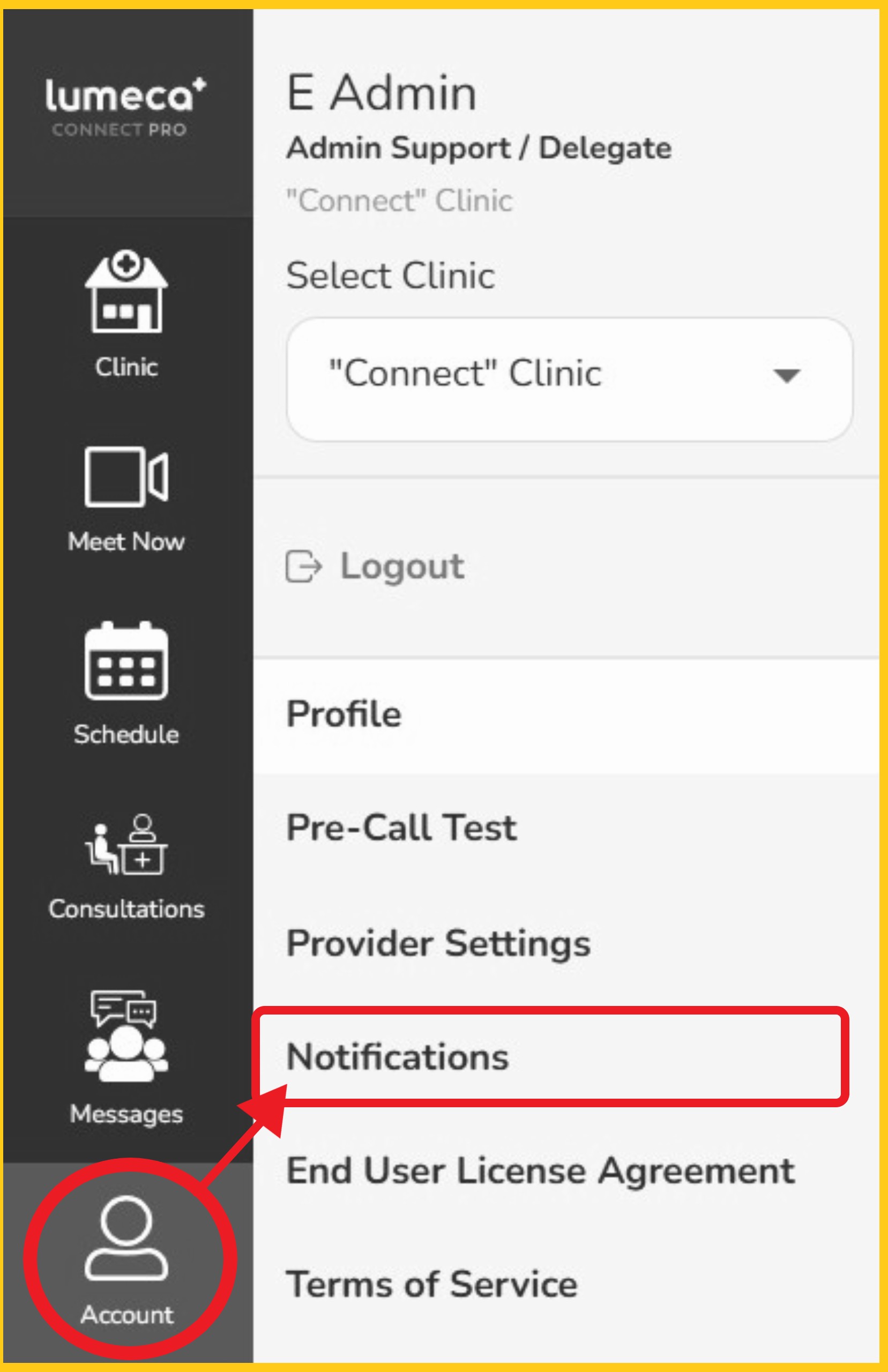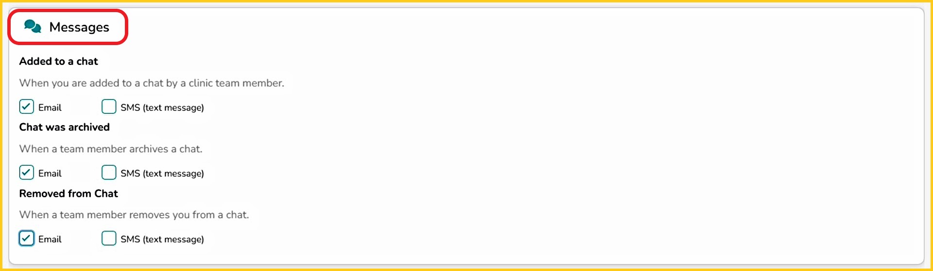 - Note: for new clinic user accounts, a pop-up will appear when first logging in, reminding the user to set all of their 'Messages' notifications.