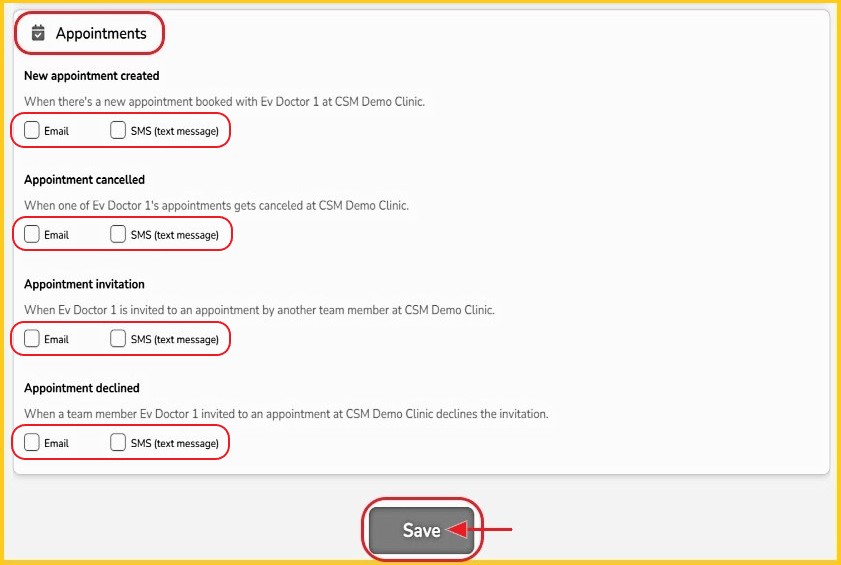 Step 3 - Under ‘Appointments’, 'check' the notifications you wish to receive.