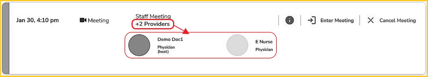- Number of providers from the same virtual clinic invited to this appointment. Click this button to see the host and invited provider's names.