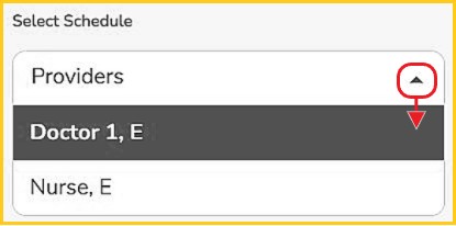 - Clinic admins must select the correct healthcare provider from the drop-down under 'Select Schedule'. (Not visible to healthcare providers)