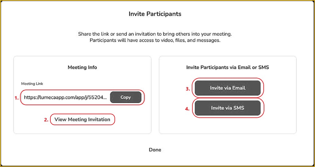 - Invitees do not need a Lumeca Health account to join.