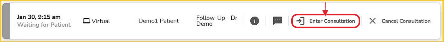 - When you are ready, click 'Enter Consultation'.