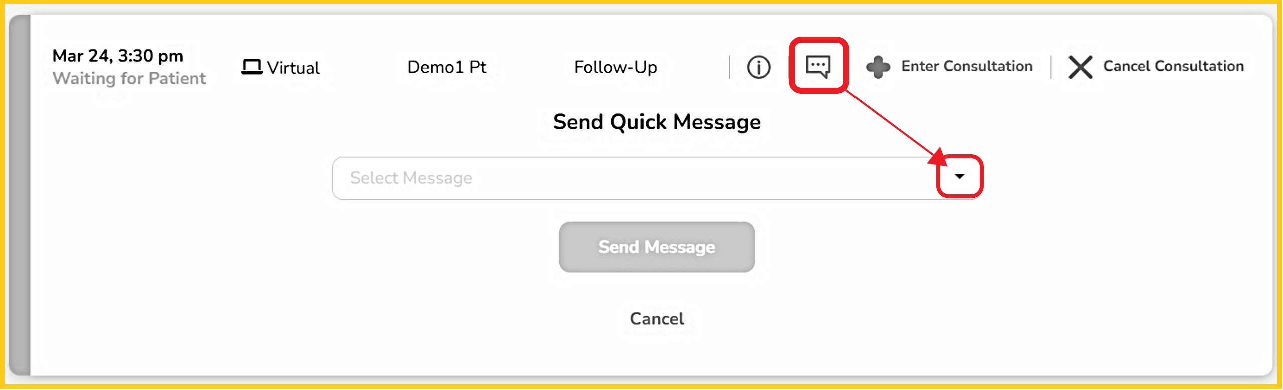 Option 1: Before Entering a Patient Consultation - 'Quick Message' |