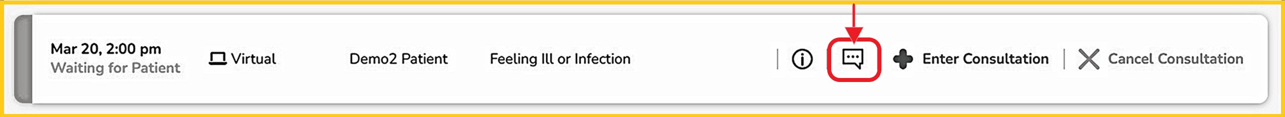 Step 2 - Find the patient consultation and click the 'Quick Message' icon.