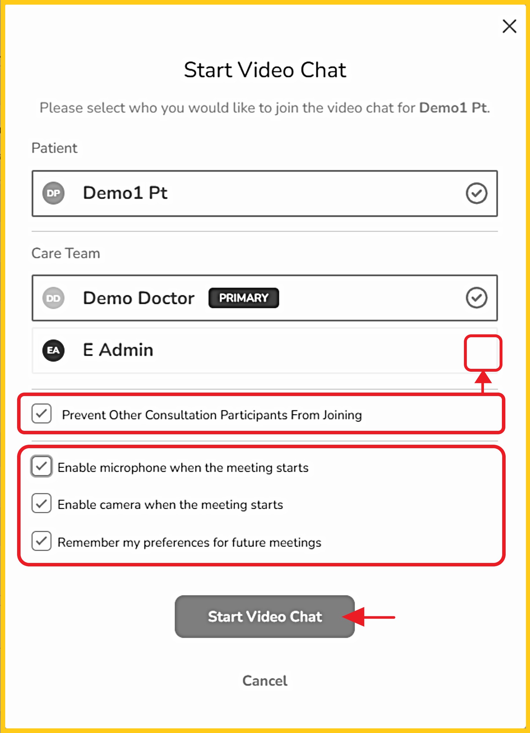 Step 6 - If other guests besides the patient have been invited, you will be prompted to allow or decline them access. Check with your patient before declining someone, as your patient may have invited a family member or caregiver.