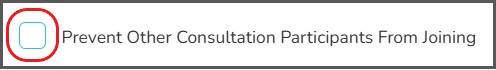 'Prevent Other Consultation Participants From Joining' is CHECKED. |