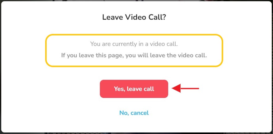 Step 2 - Note the message, then tap 'Yes, leave call' to confirm.