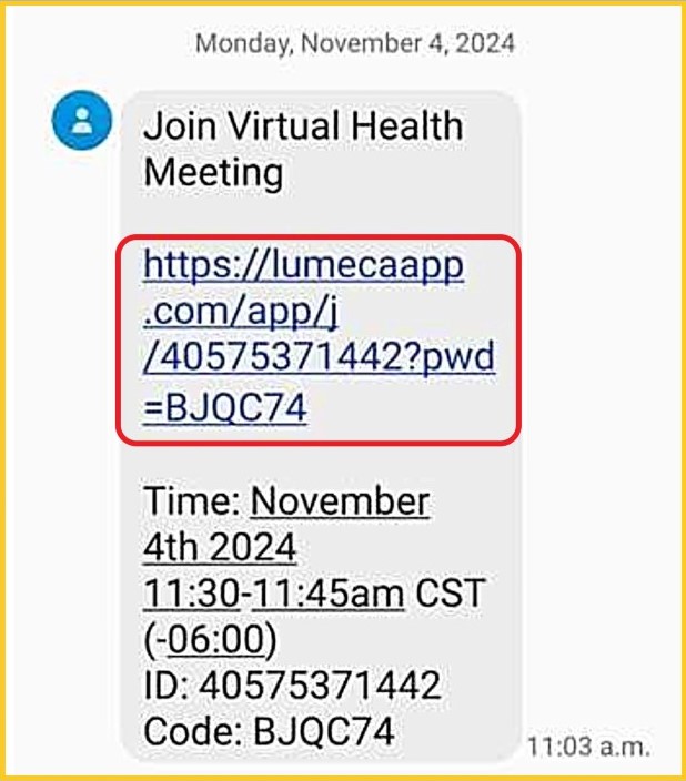 Step 2 - Navigate to your text messages and find the message with the video meeting information.