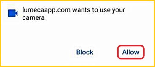 Step 4 - If prompted, allow your camera. Note: this prompt may differ depending on what device and browser you are using. Here are a few examples: