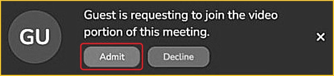 Step 7 - Once the invitation has been sent to participant(s), wait for them to arrive. As they do, either 'Admit' or 'Decline' them.