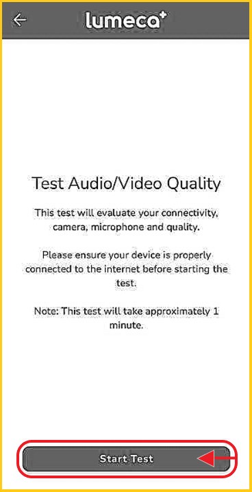 It is recommended you run this test each time you log into the ‘Lumeca Health’ APP (or more often if desired) to ensure everything is working properly on your device before you begin virtual sessions.