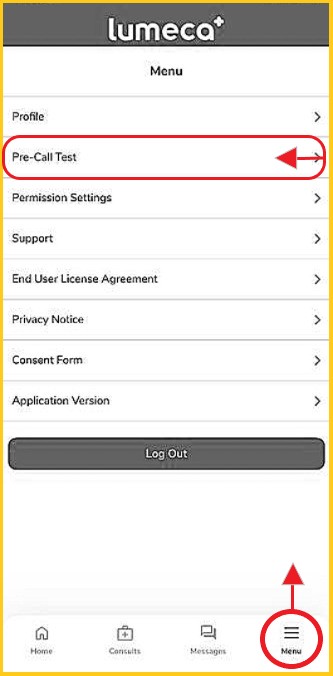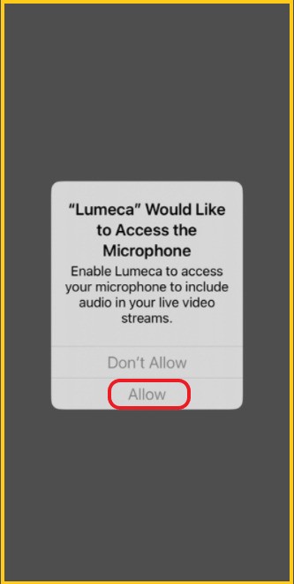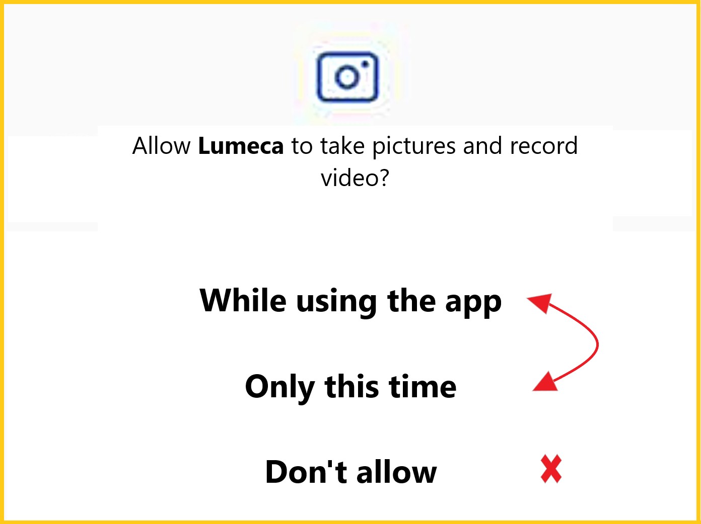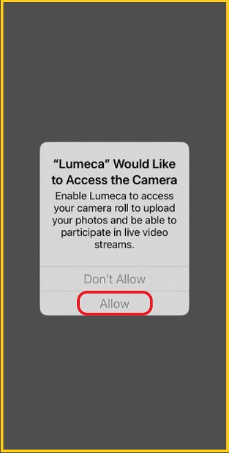 Step 3 - The first time you use the 'Lumeca Health' app and run the 'Pre-Call Test', you will be prompted for permissions to your camera and microphone.