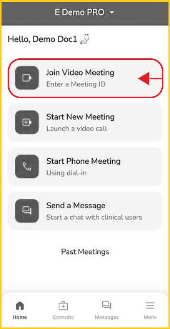 Step 2 - On the 'Home' screen, click 'Join a Meeting/Join Video Meeting'.