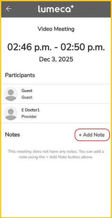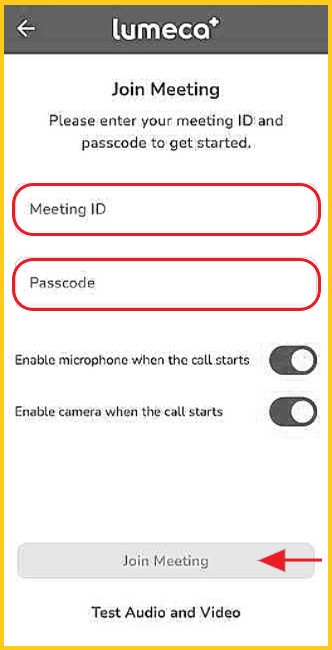 Note: The meeting host and care team members from the same virtual clinic who have also been invited to attend, access scheduled meetings from the 'Consultations' tab after logging into their 'Lumeca Health' account. |