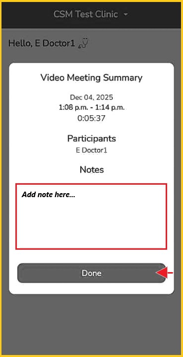 Step 6 - 'Video Meeting Summary' - the host may add a meeting note, if desired.